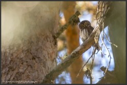 It is mid-October and at this time of the year the miniature owls are particularly active, even during the day. The males are establishing their territories and looking for potential partners. Their call is easy to recognise, but given their tiny size (no bigger than a starling) and their cryptic plumage, they can be very hard to spot, even if you hear them call right above your head.