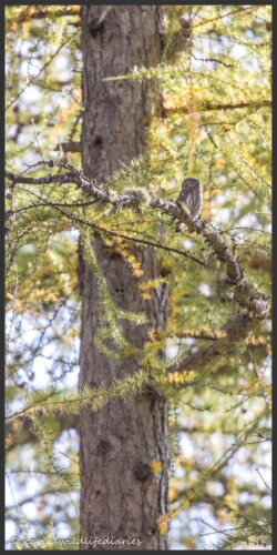 But well worth the effort as you can see in the selection of images below. They are the result of 2 full days spent tracking the tiny owls across the gorgeous high altitude larch stands of the French Alps. And all of that when the autumn colours looked their best!